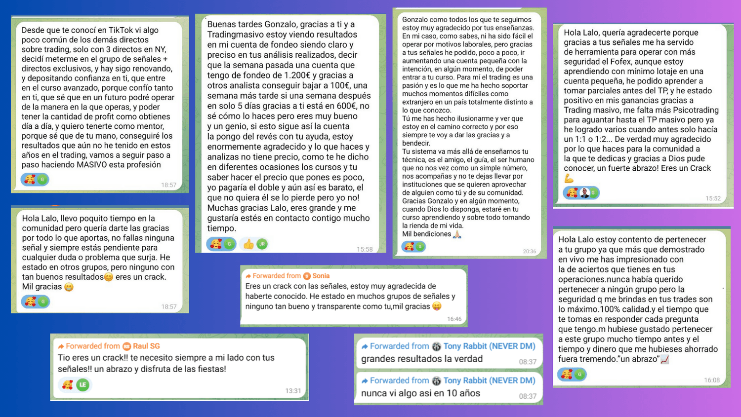 Entrar a los directos y además acceder al grupo de telegram de señales es el combo perfecto por 250 euros al mes.